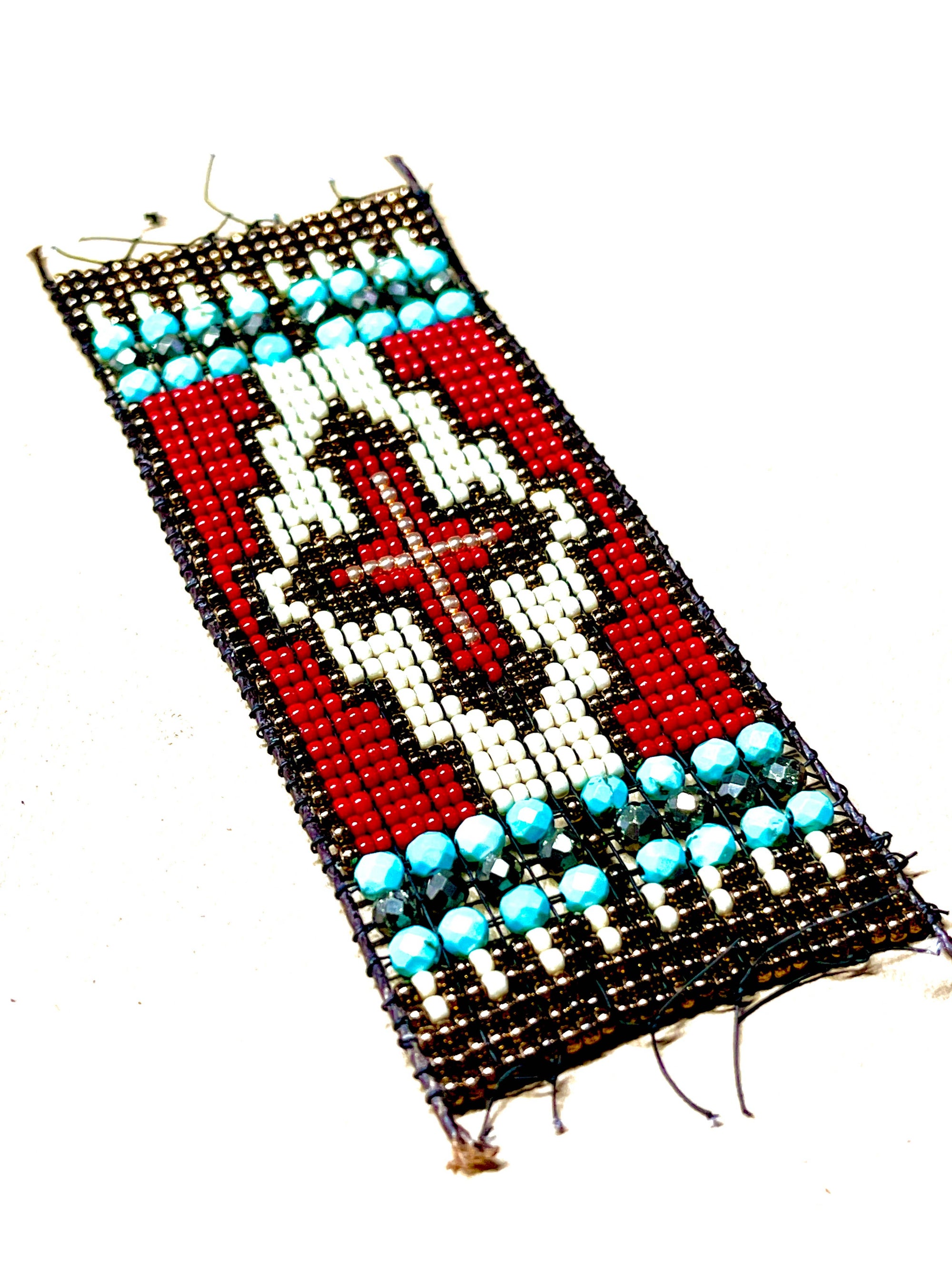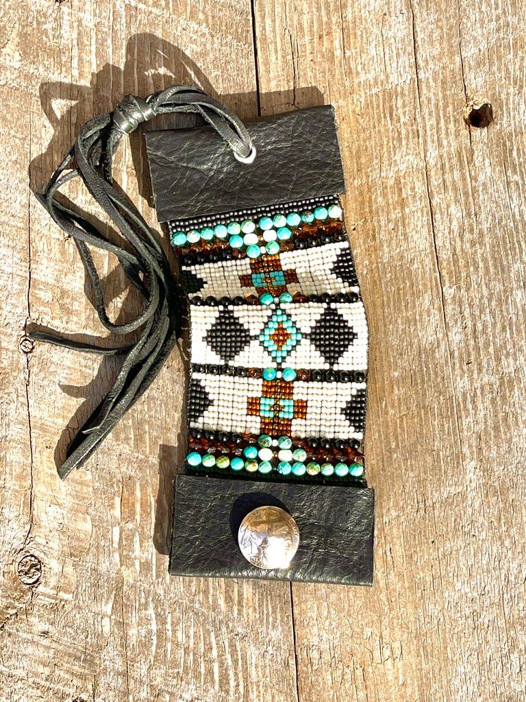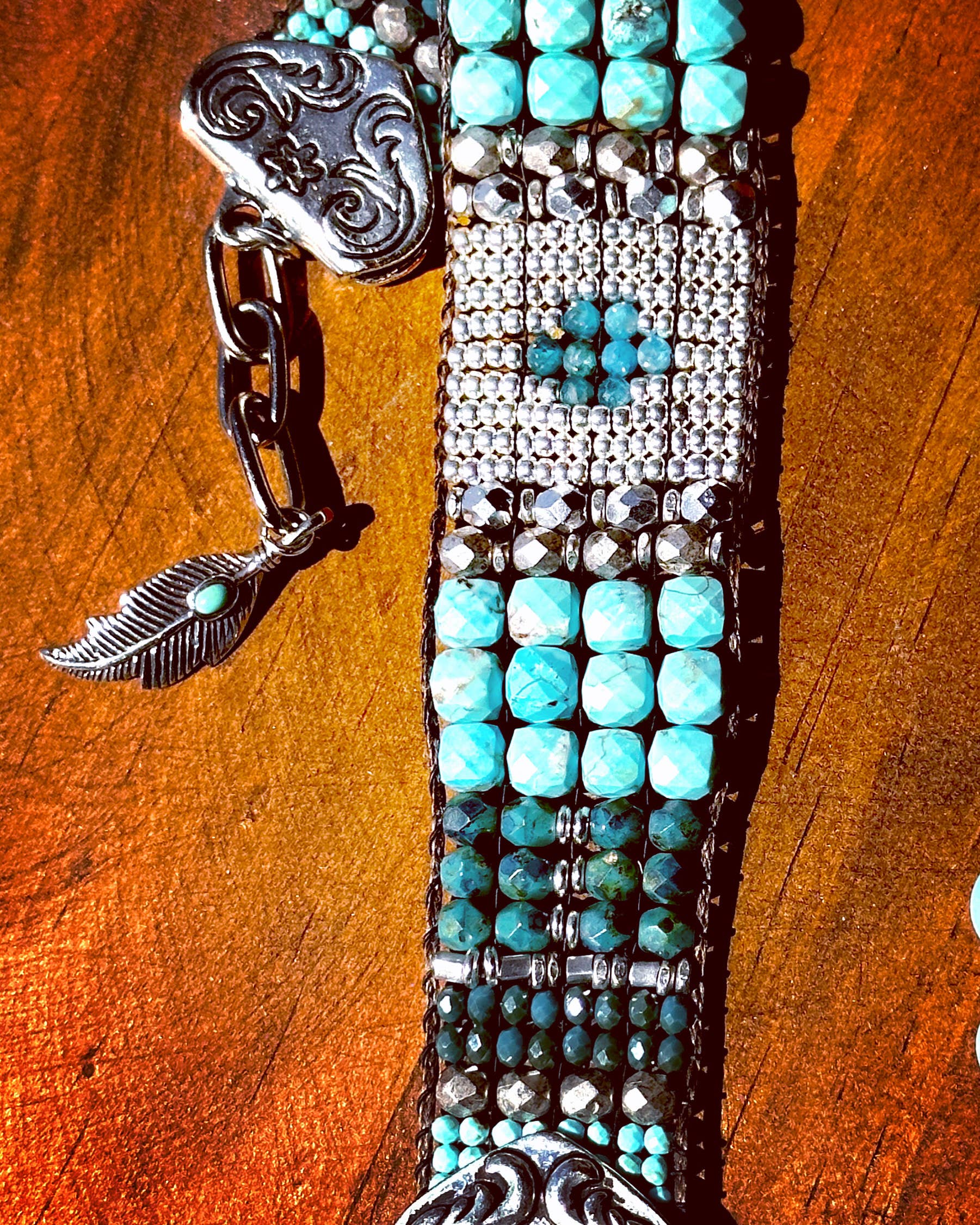 Fleurdesignz Western Jewelry Turquoise And Leather Loom Cuff Bracelet: Prairie Drifter
