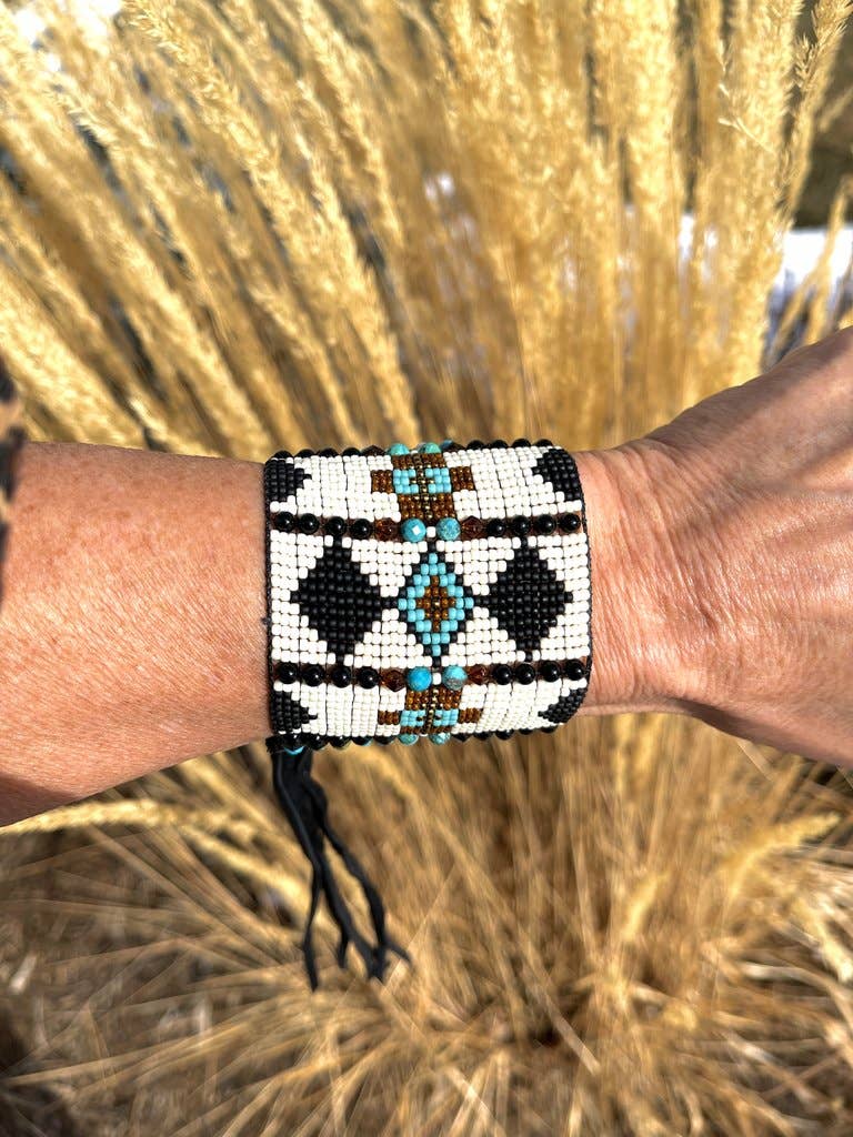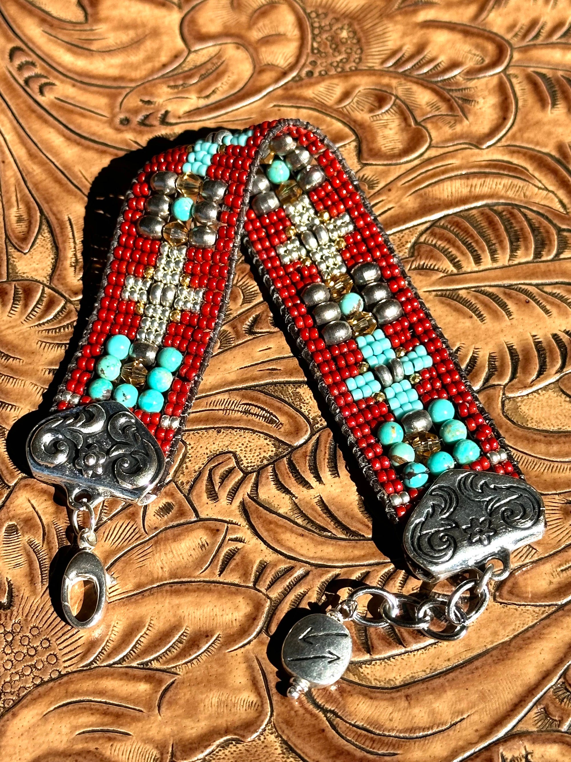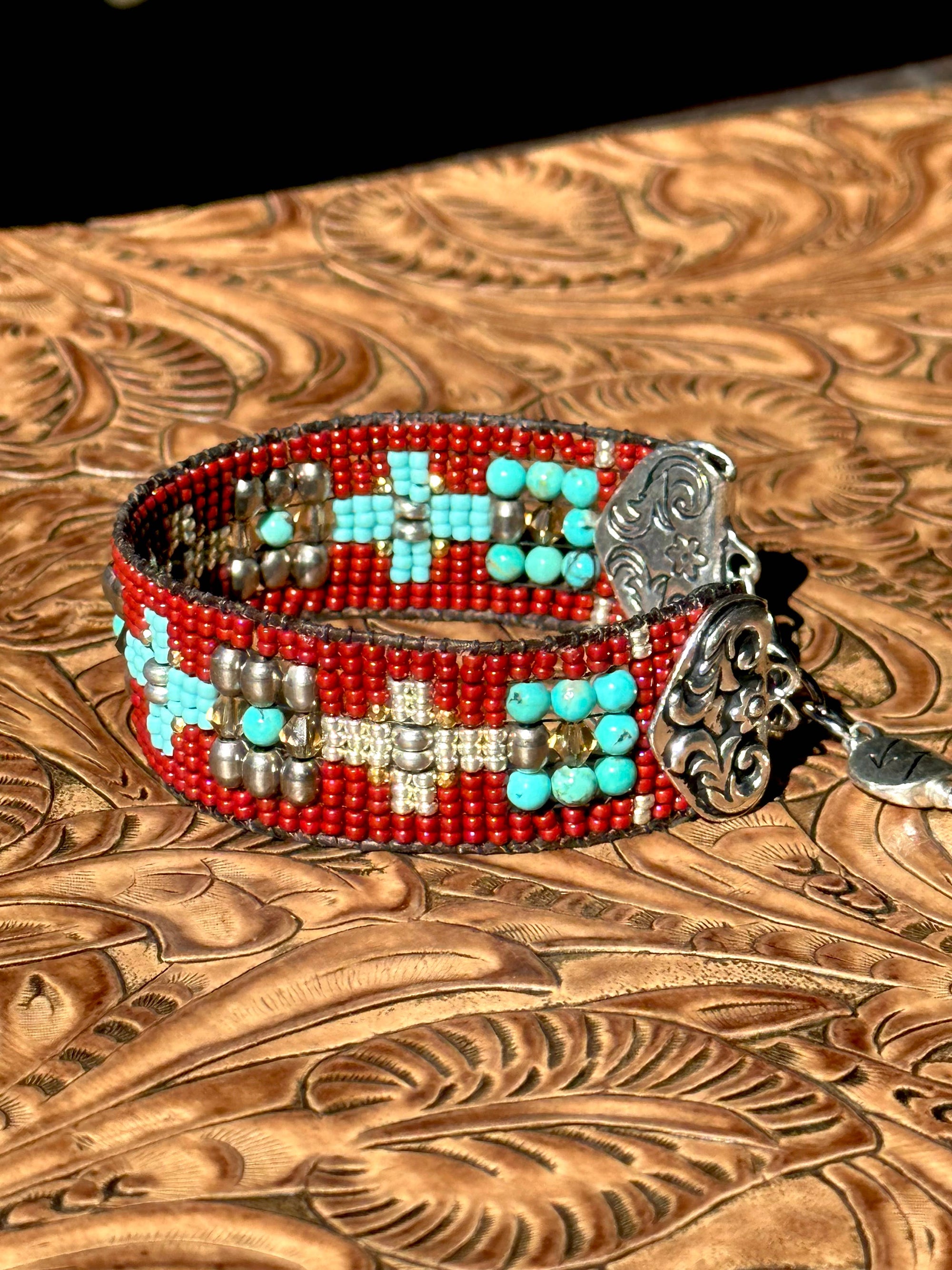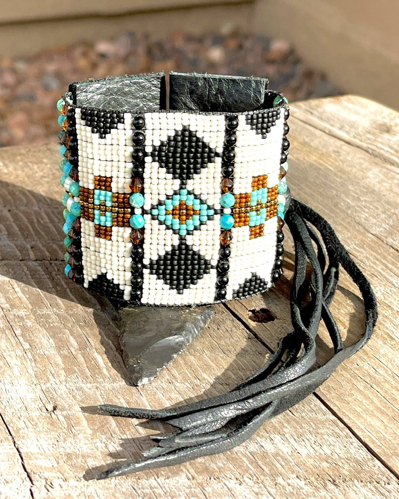 Fleurdesignz Western Jewelry Western Beaded Leather Cuff