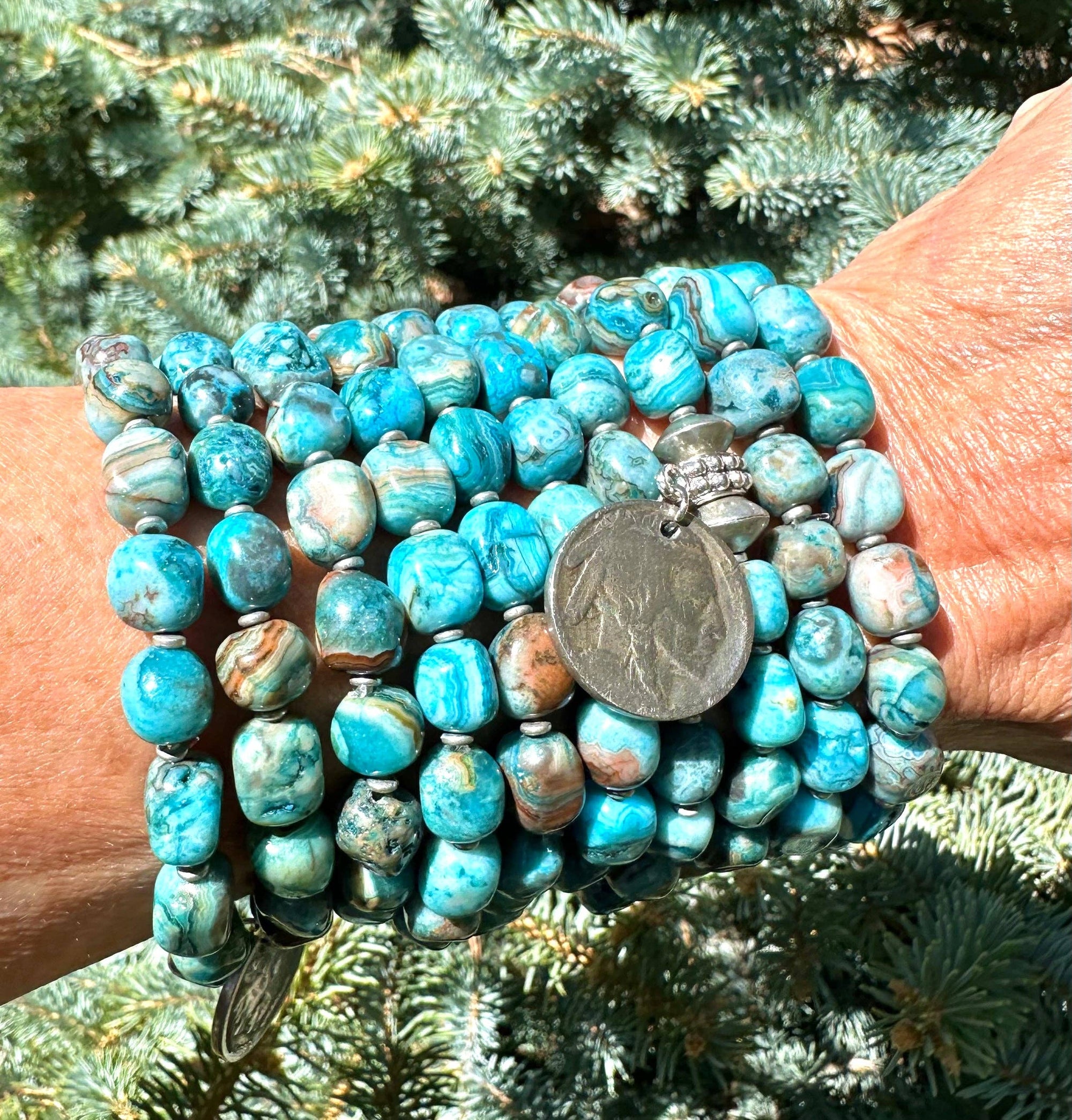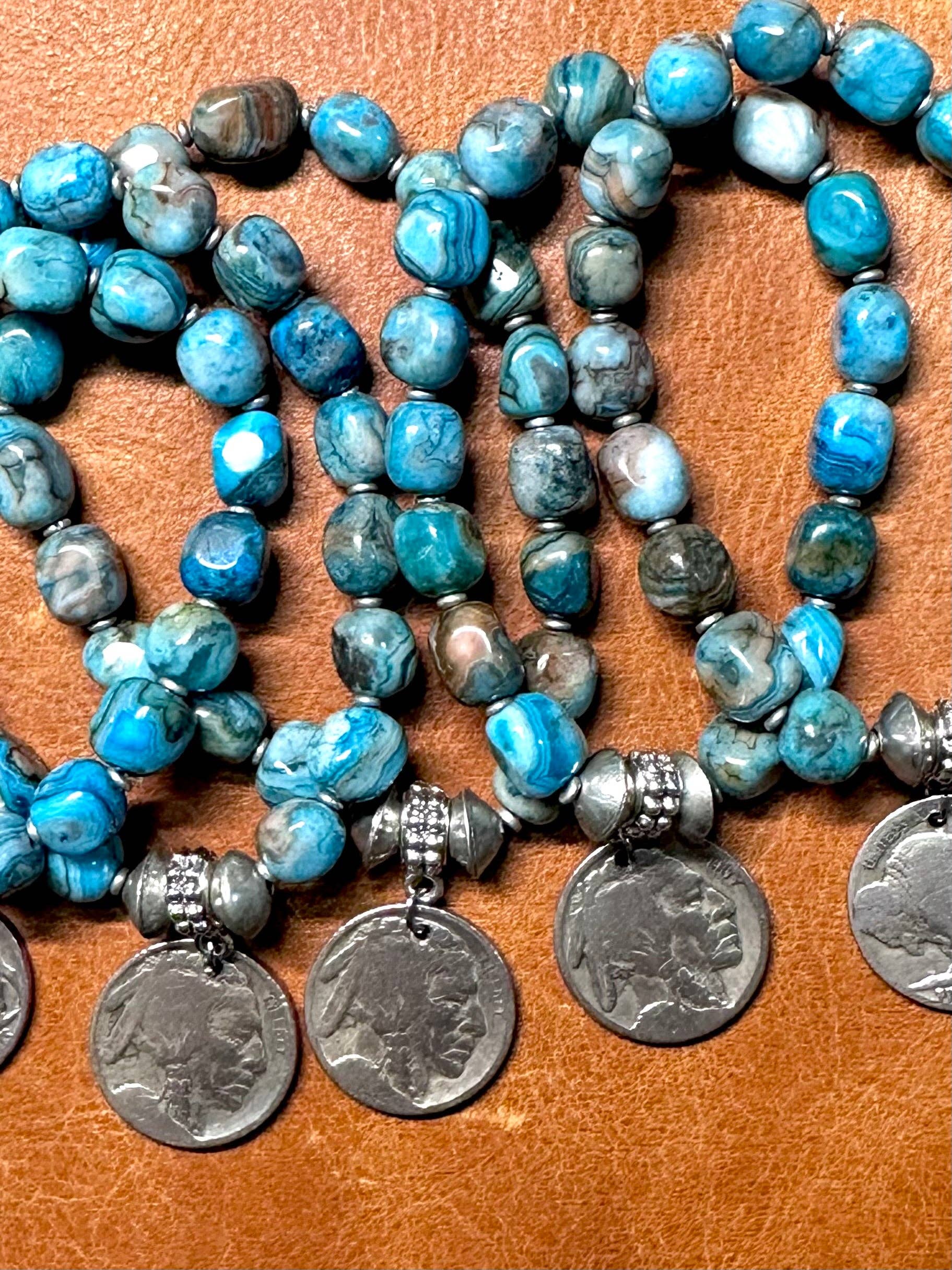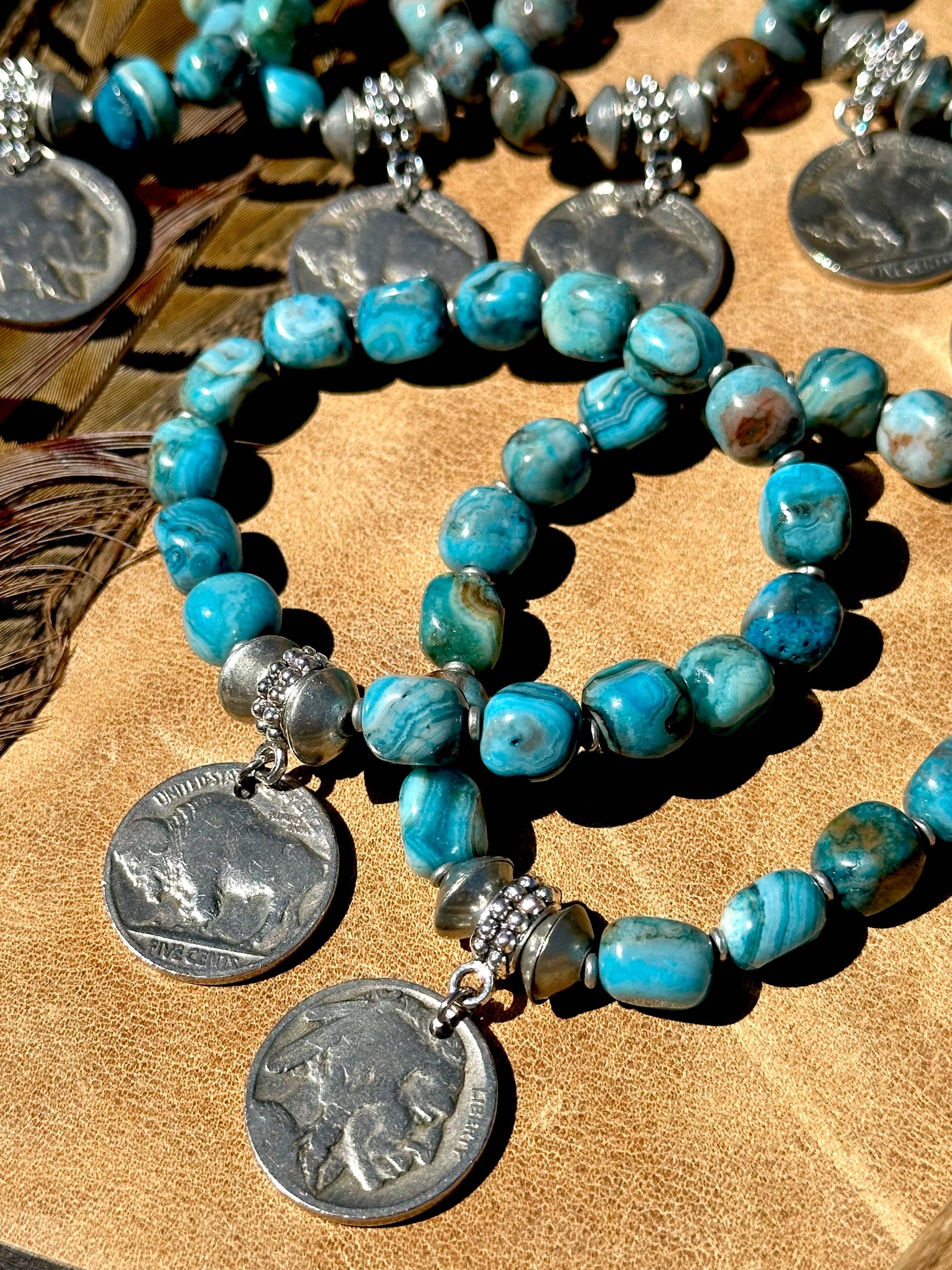 Fleurdesignz Western Jewelry Buffalo Nickel Larimar and Agate Bracelet