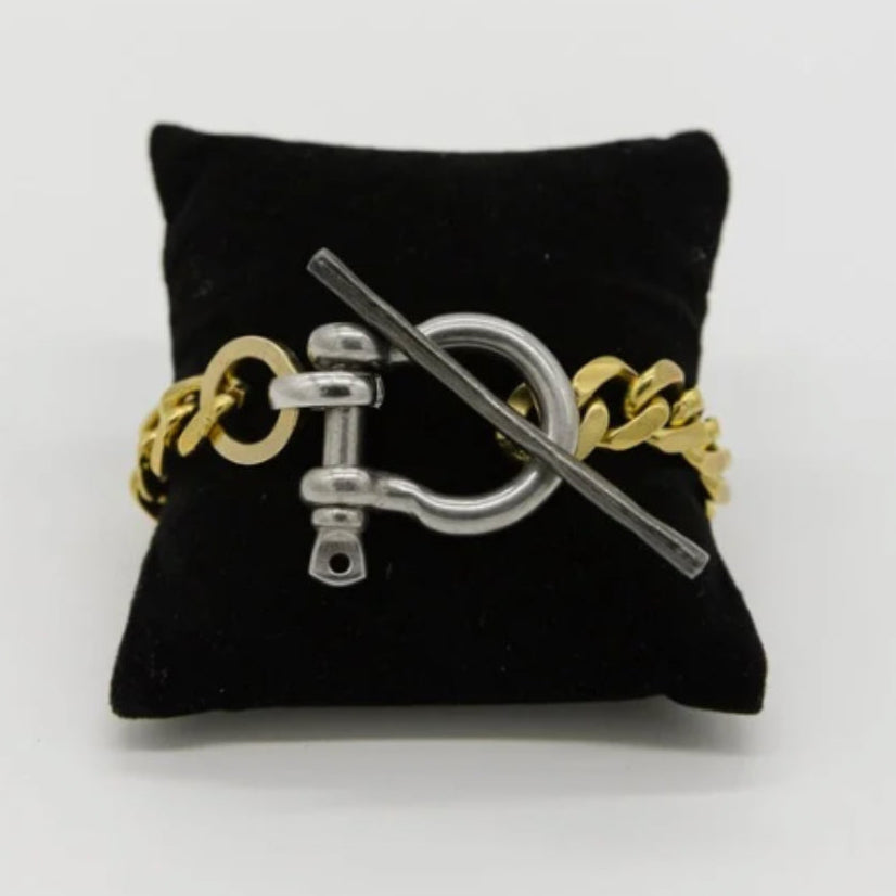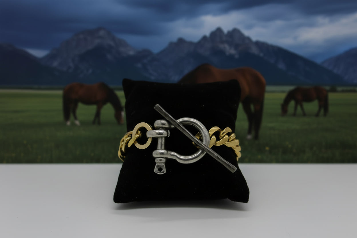 V2 Bracelet Silver Shackle w/Toggle on Gold Curb