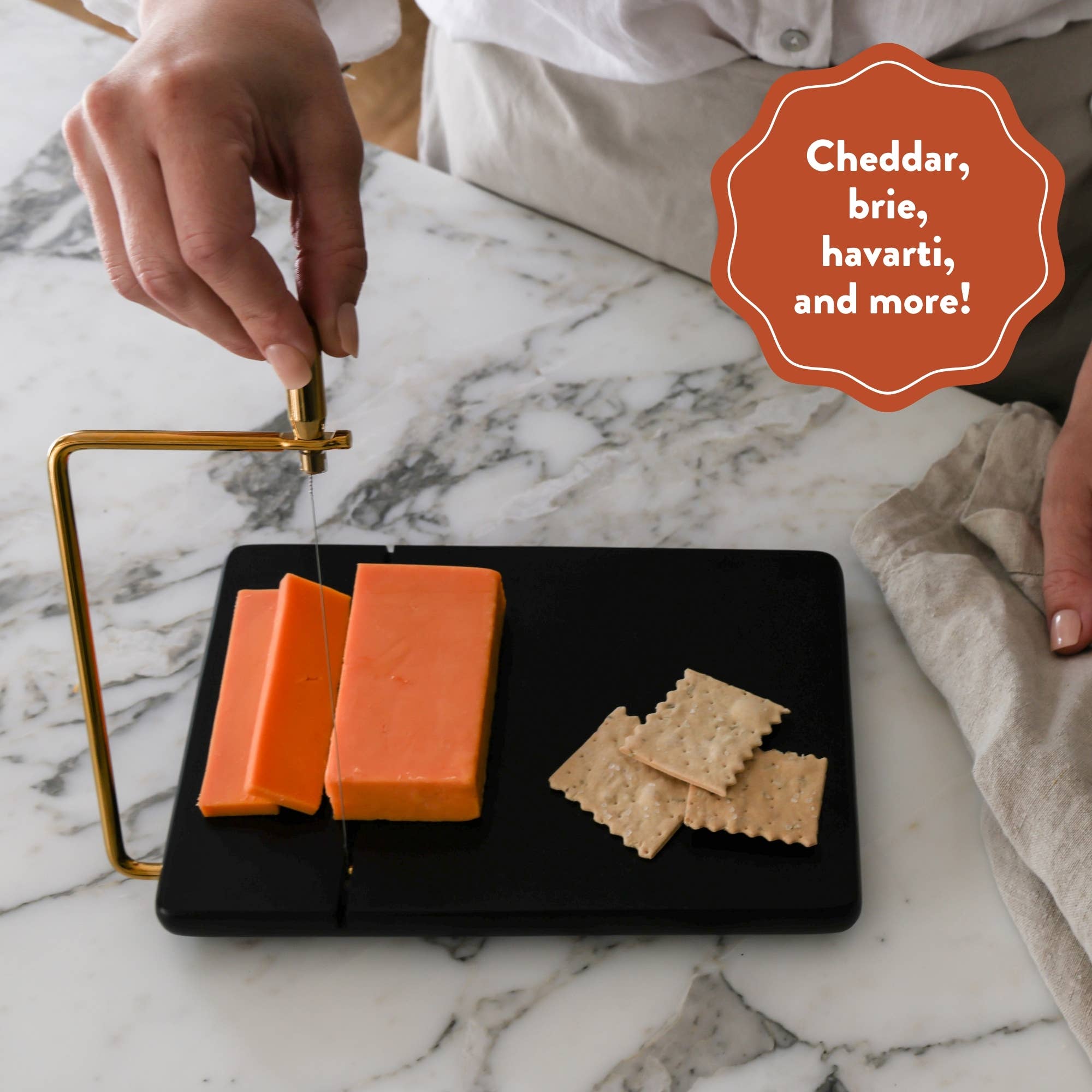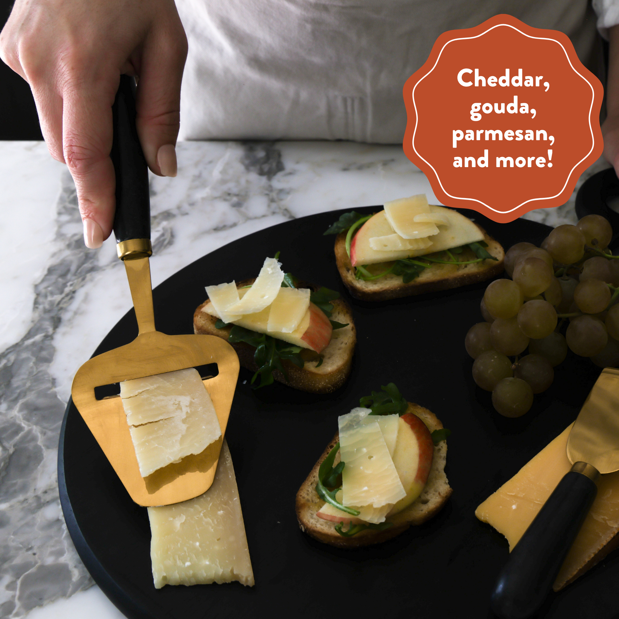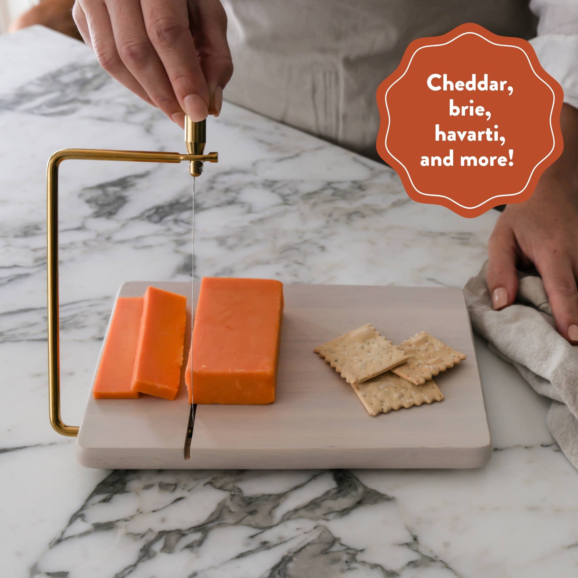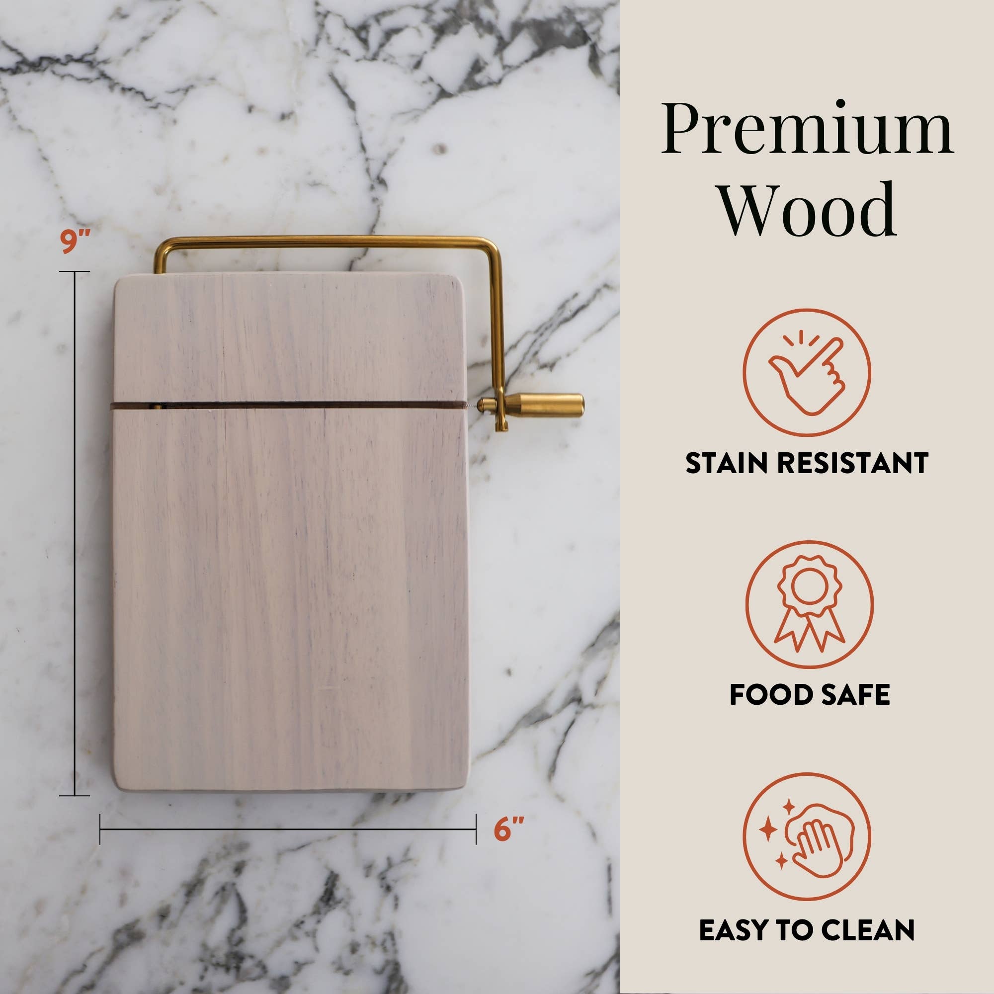 Host at Home Cheese Slicer, White-Washed Wood Marble Handheld Cheese Slicer Starter Kit | Cheese Plane
