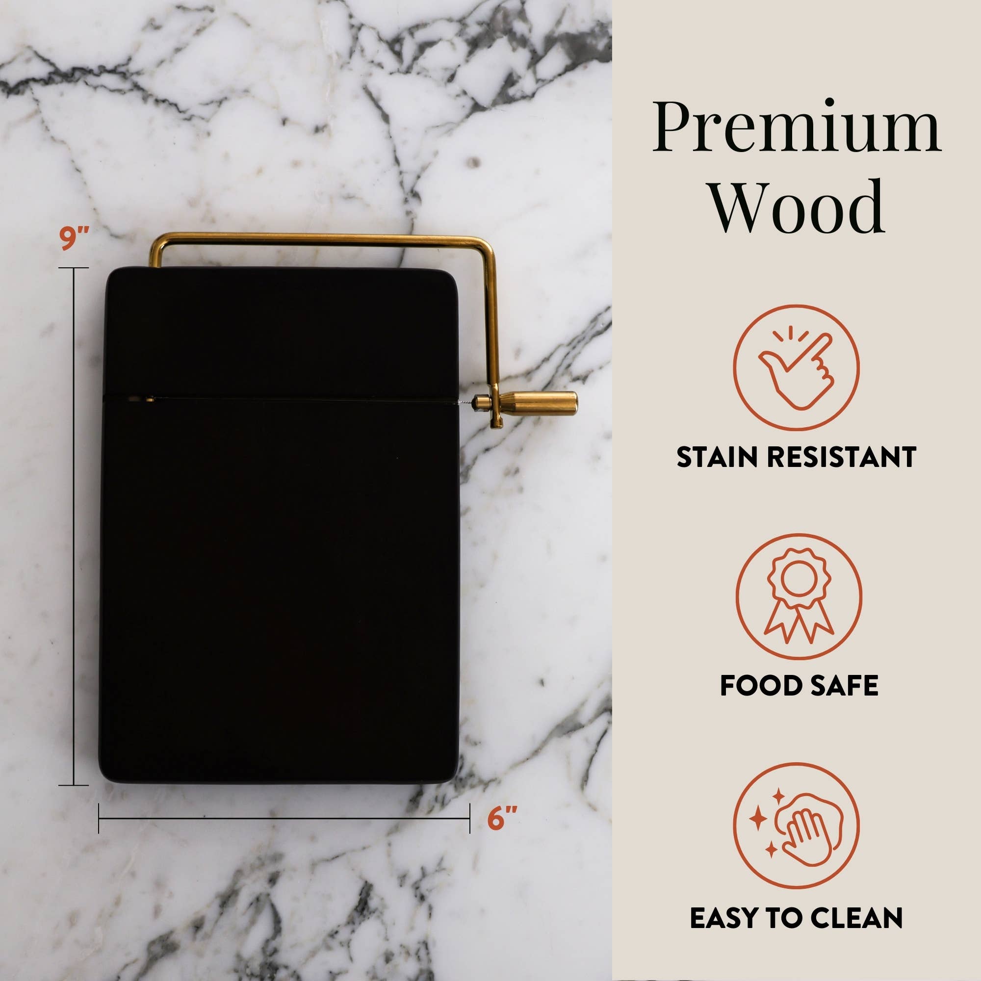 Host at Home Cheese Slicer, White-Washed WoodWire Cheese Slicer, Black Wood