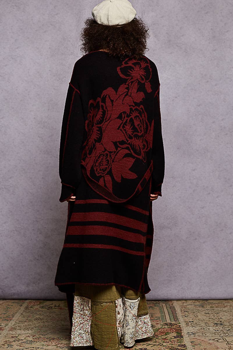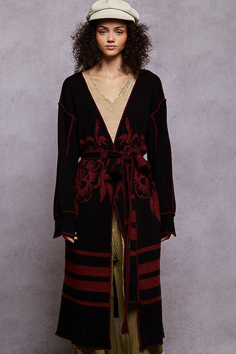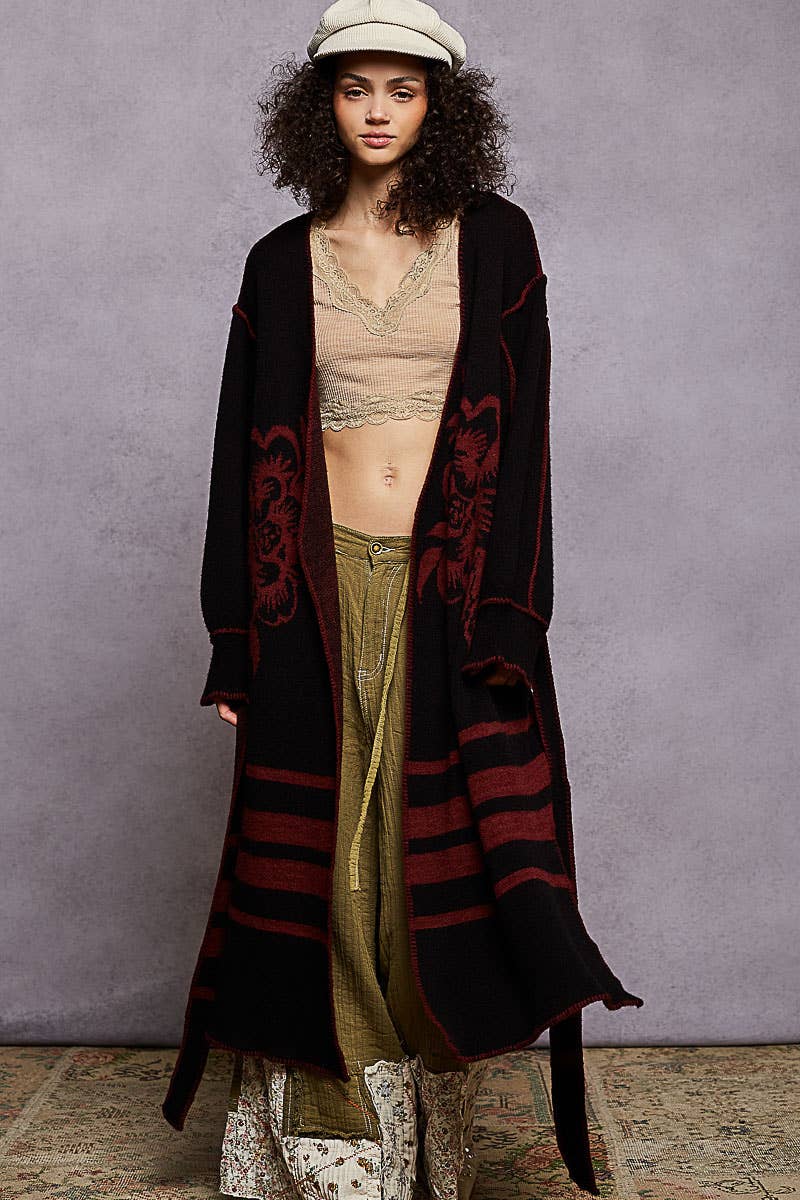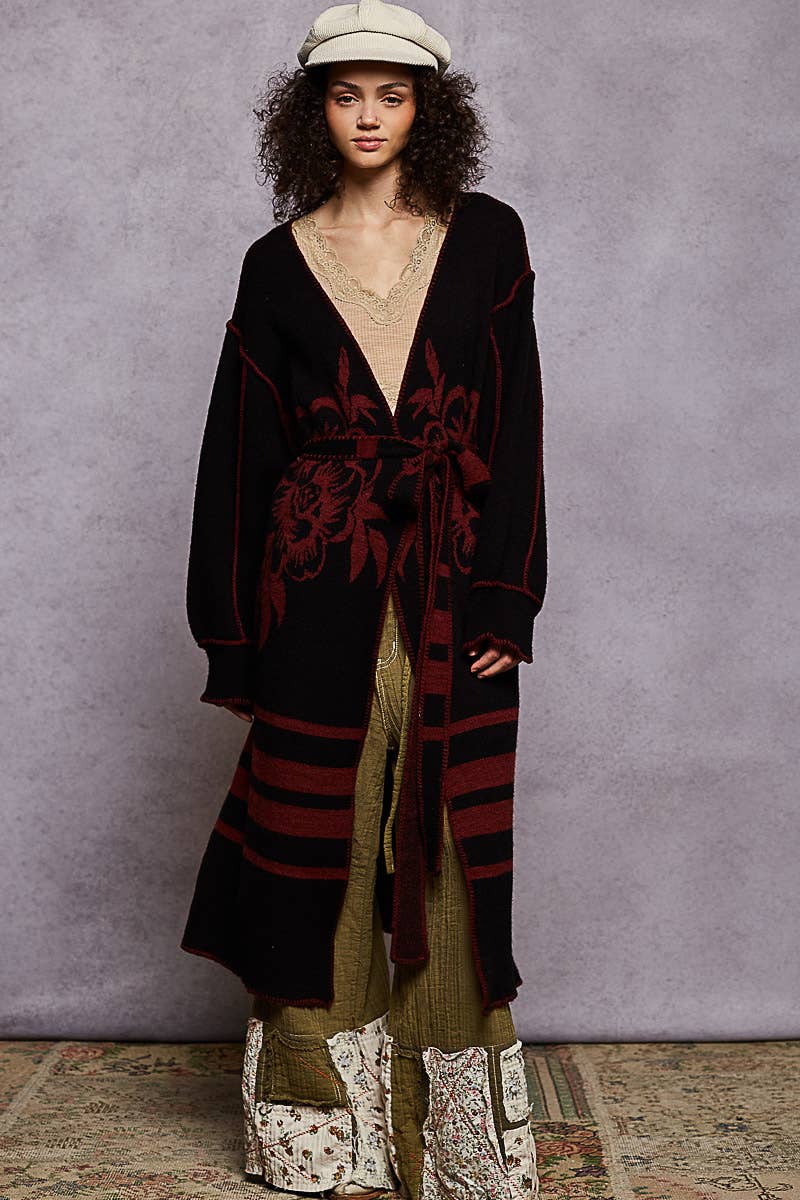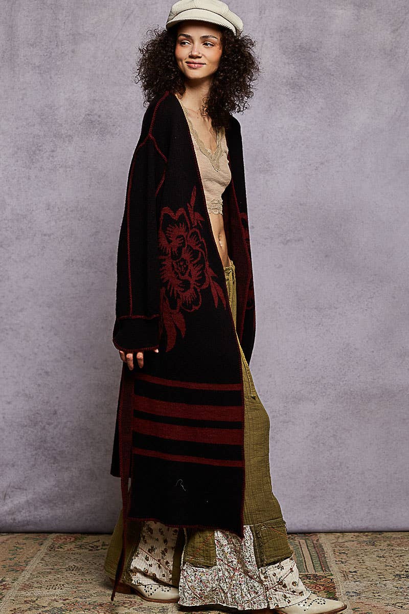 Pol Clothing Long Sleeve Striped Floral Cardigan Sweater