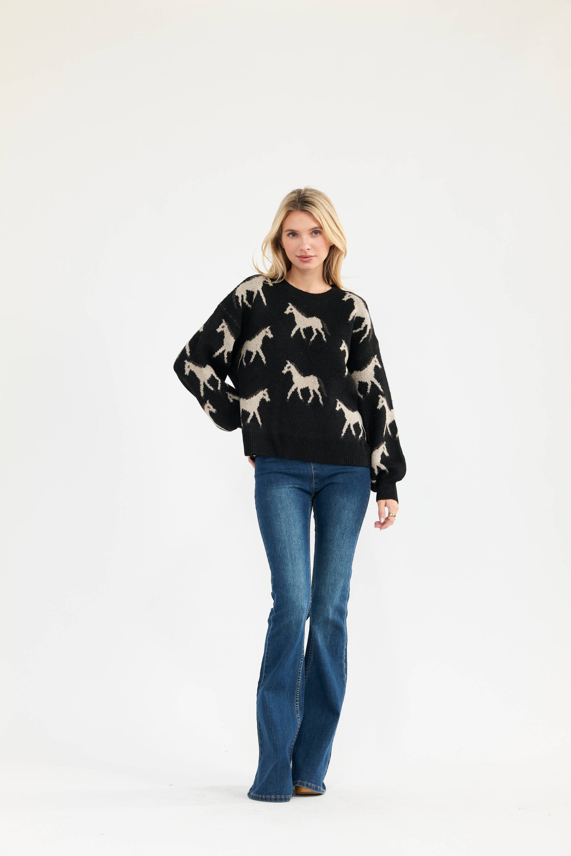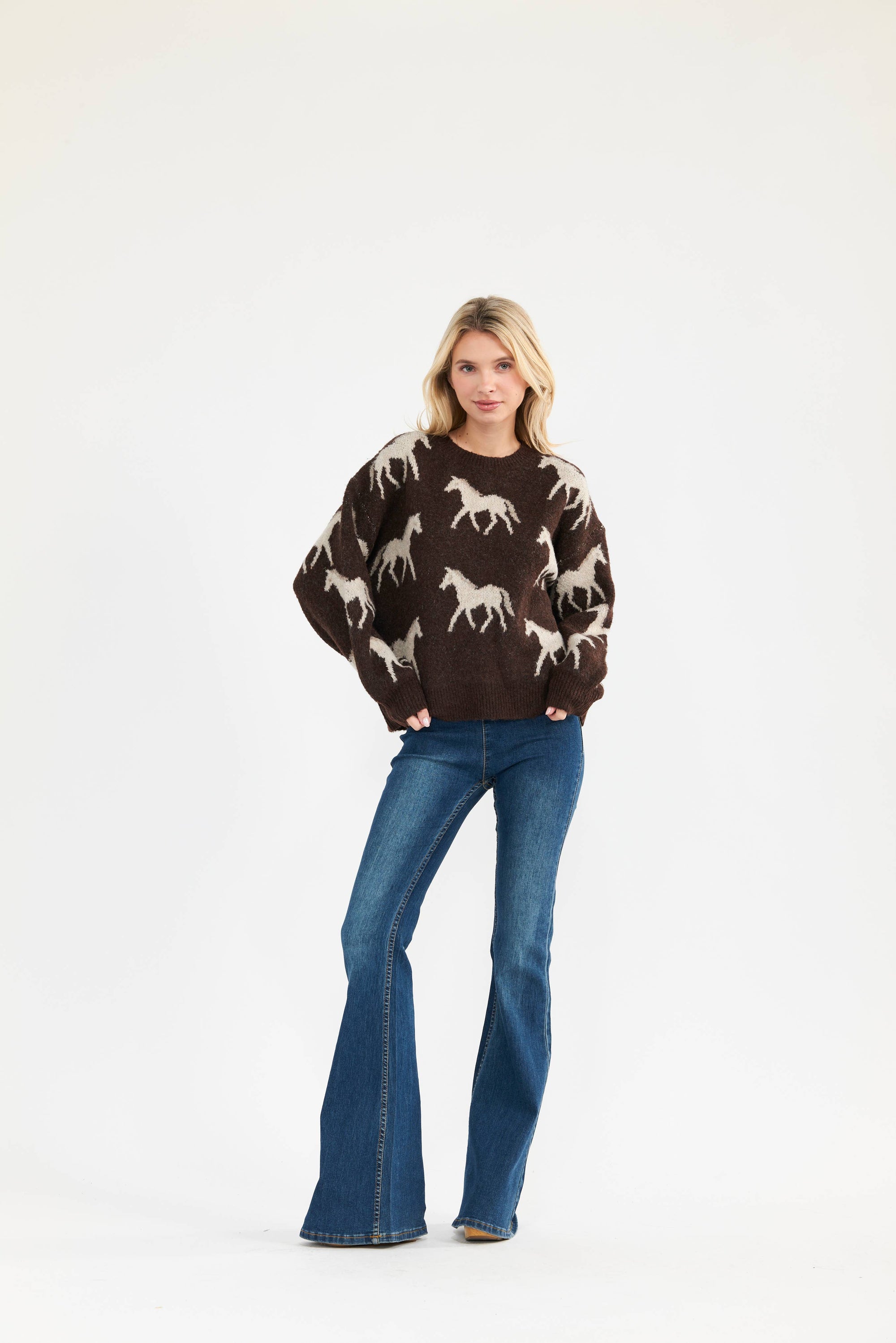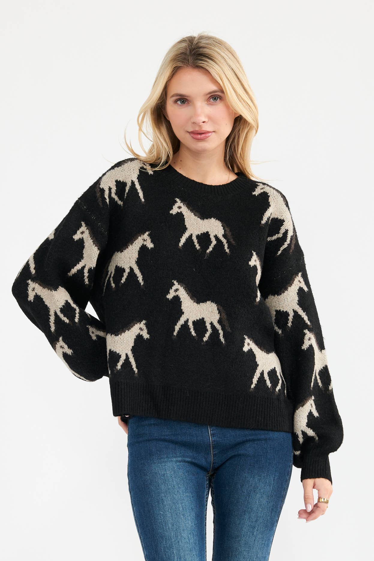 Newbury Kustom Horse Pattern Knit Sweater