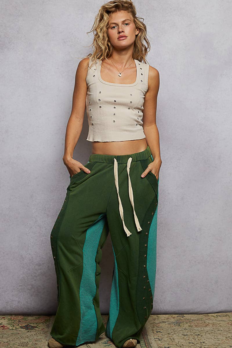 Pol Clothing Embroidered Striped Chenille Sweatpants