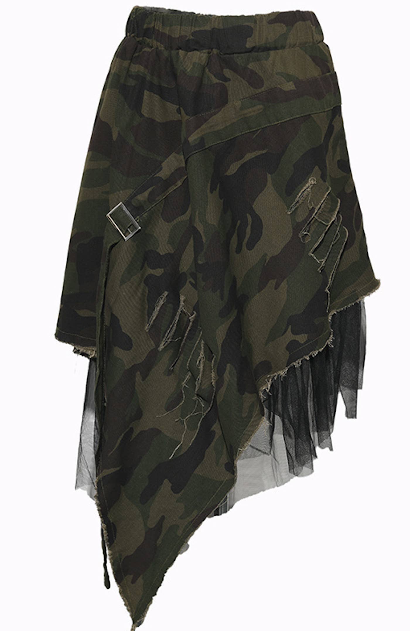 Luxe & Leather Camo + Tulle Asymmetrical Skirt